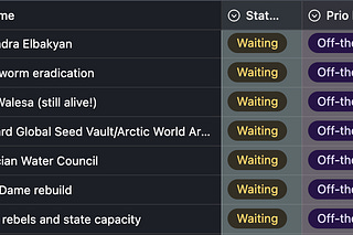 A Statecraft Table of Contents