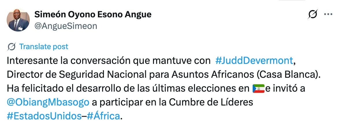 Let me ask you about another case of engagement you’ve written about, with Equatorial Guinea. There was a presidential vote that the Biden admin publicly condemned. The admin said there were, “Credible allegations of fraud, intimidation, and coercion.”
