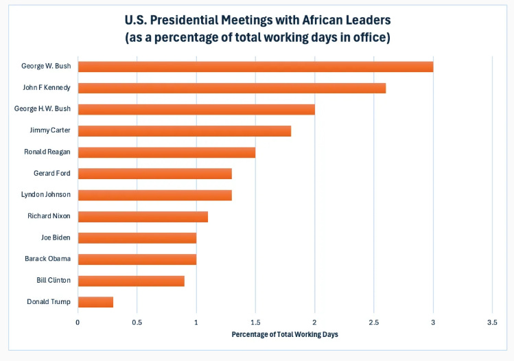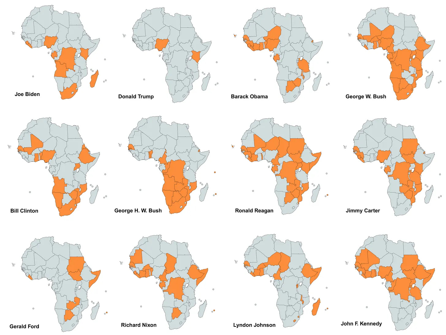 Of the five most recent presidents — I learned this from your Substack — only George W. Bush spent significant time with African leaders. Presidents Clinton, Obama, Trump, and Biden spent far less time with African leaders. Compared especially to JFK, Nixon, Reagan, H.W., Carter, modern presidents spend less time on Africa. Why is that?
