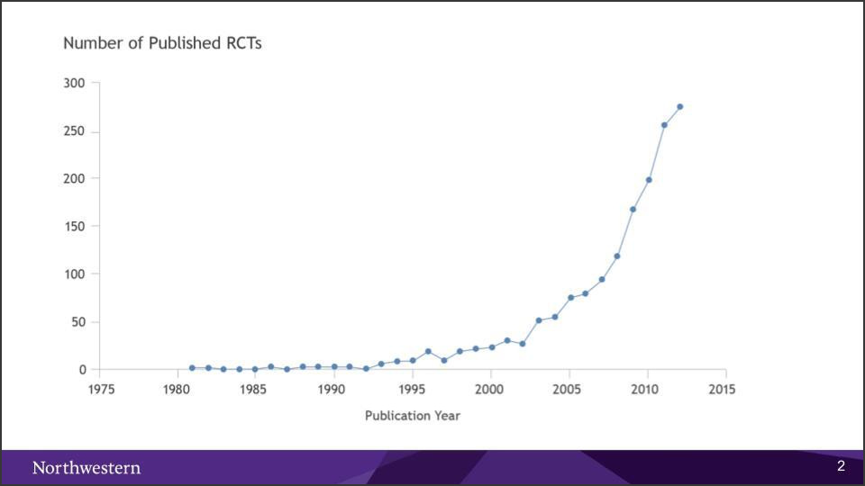 Let me do two slides for you. The slide that I was picturing was a count of randomized controlled trials in development that shows a fairly exponential growth. The movement started in the mid-to-late 1990s, but really took off in the 2000s. Even just in the past 10 years, it's seen a considerable increase. There's about 4-5,000 randomized controlled trials evaluating various programs of the kind USAID funds.